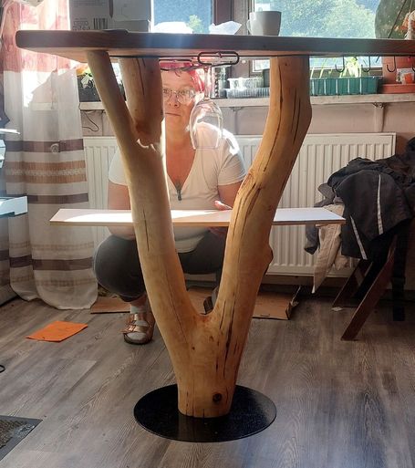 Durch meine Heirat lernte ich in der Firma meiner Schwiegereltern meine Liebe zu Holz kennen. Ich fing an aus altem und neuem Holz Deko und Stehtische zu entwerfen und zu bauen, was sehr guten Anklang fand.