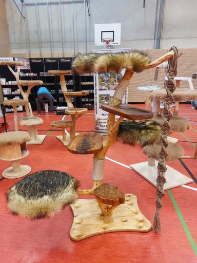 Handgefertigte Unikat Katzenkratzbäume aus unserem Lager oder nach Deiner Vorstellung für Zimmer, Wand oder Garten.
